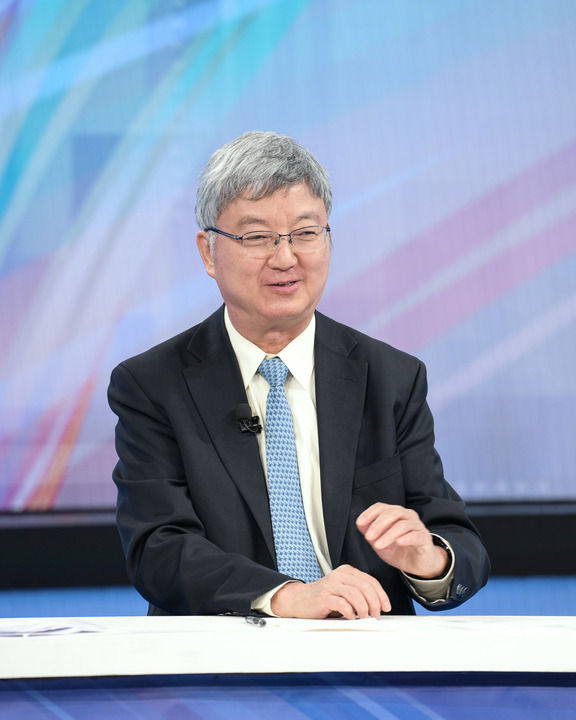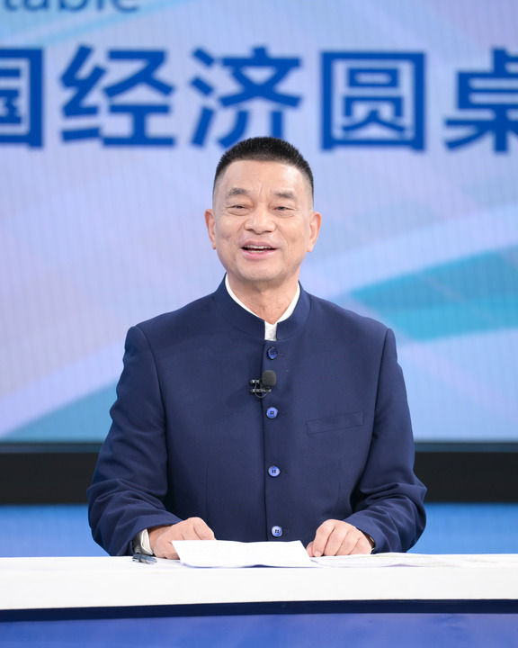 中国国际经济交流中心资深专家委员朱民在第十五期“中国经济圆桌会◆■”录制现场发言。新华社记者 李贺 摄